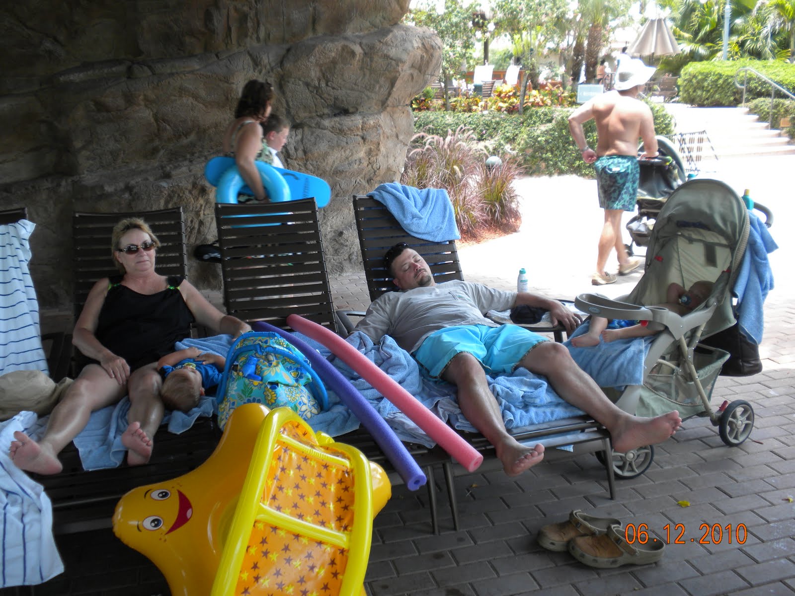 I was trying to get a few different shots of the pools--where everyone is standing is the "cave" and there are some lounge chairs and you can hear the waterfall and is so relaxing and this is where everyone parks the strollers for the babies to take a nap: