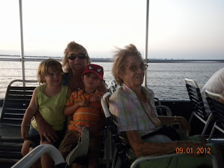 A few weeks ago, my Mommy, Grandma, Uncle and his step granddaughters met up with us at Fisherman's Village for dinner followed by a sunset cruise. Kyler has been wanting to go for a boat ride and thought Kolton would enjoy it too...along with my Grandma.